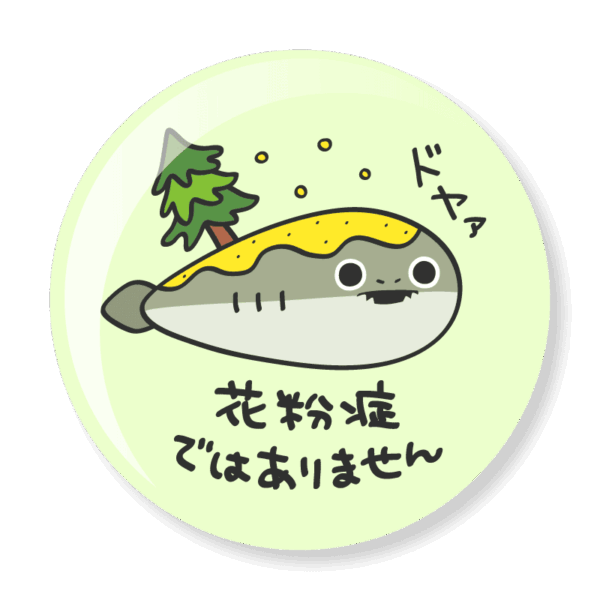 花粉が舞い散る季節に、花粉症の症状がでない奇跡の研究員へ! この缶バッジをつけて、バスピとともにドヤァしてください!